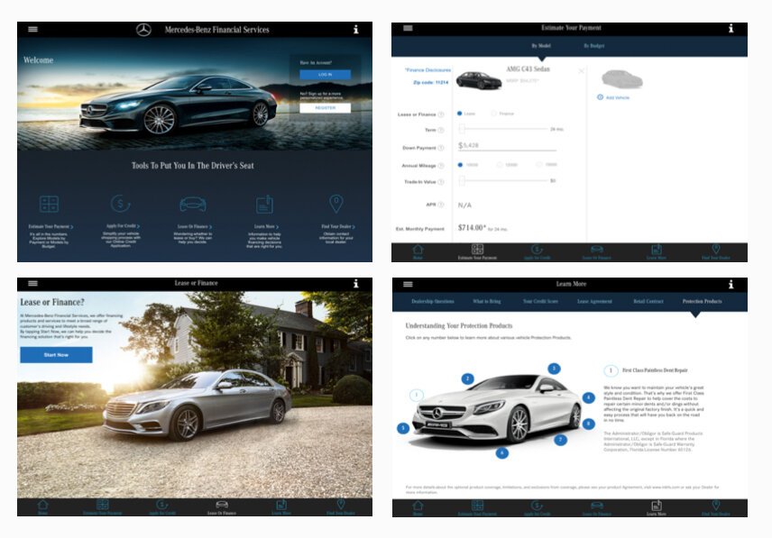 I have worked with Mercedes-Benz Financial Services for several years on projects related to their website and financing apps.